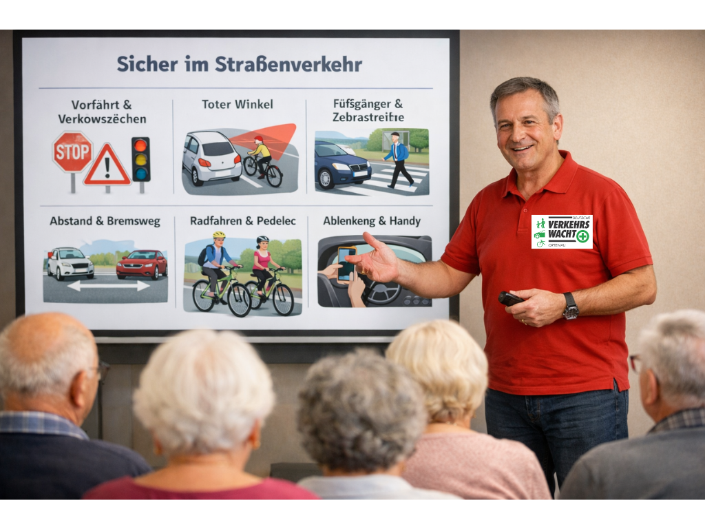 Insbesondere für Seniorinnen und Senioren führen wir bedarfsorientiert Vorträge zur Verbesserung der Sicherheit im Straßenverkehr durch und informieren zu aktuellen Änderungen im Straßenverkehrswesen. Vorträge zu diesem Thema werden aber auch für weitere interessierte Gruppen angeboten.
